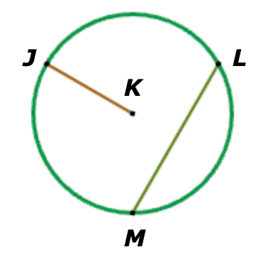 Using the following diagram, determine how many chords are in the circle and name TWO chords.