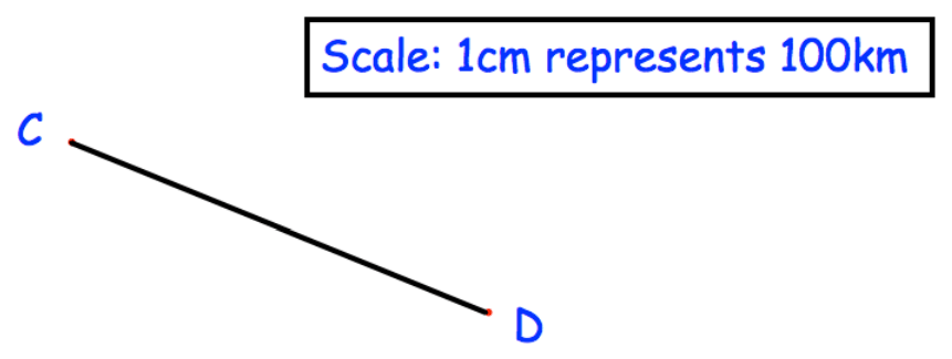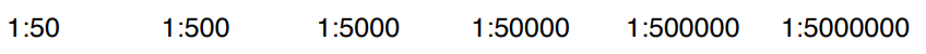A map has a scale of 1cm equals 50m. Which scale below represents this?