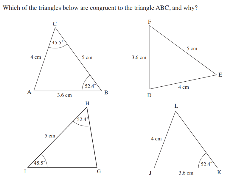 True or False: If two triangles have all the same side lengths, they are congruent.