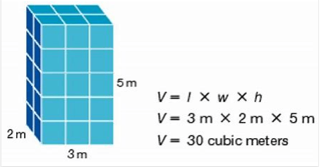 Volume of a rectangular prism that has a length of 10 inches, a width of 4 inches, and a height of 6 inches.