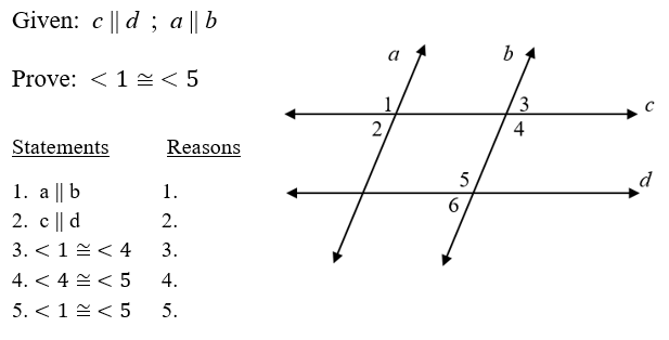If angles 1 and 5 are congruent, then lines l and m are parallel.