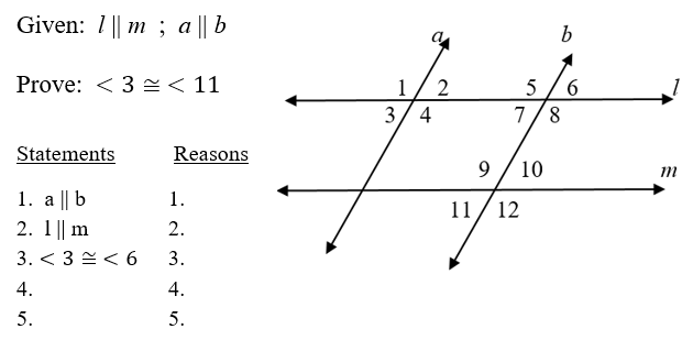 If lines l and m are parallel, then angles 2 and 7 are congruent.