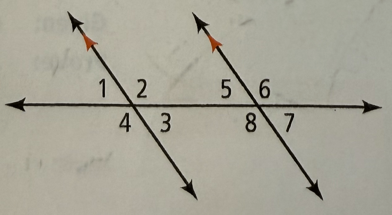 The measure of <3 is 55. Which angles are supplementary to <3? Justify each one.