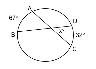 Find the value of x if meaure of arc AB = 67° and meaure of arc CD = 32°.D
