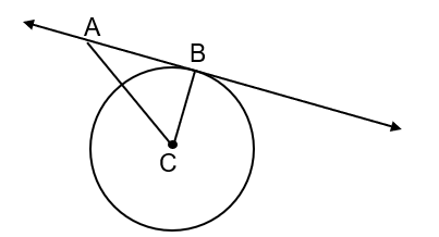 \oversetleftrightarrow{AB} is tangent to circle C at B.  If AB = 10 and the radius of the circle is 7, find AC.
