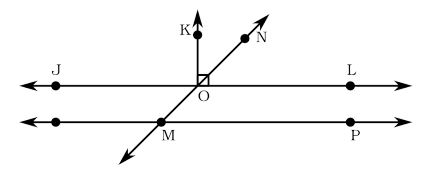 m\angleJML = 120^\circ and \overline(MK) is the angle bisector, find m\angleJMK.
