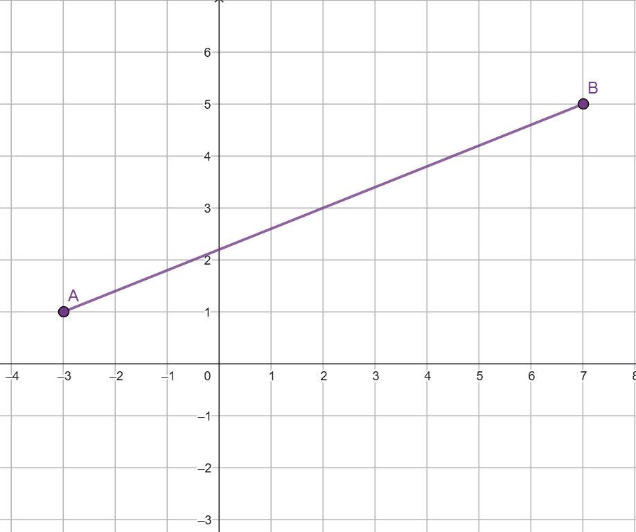 Find the midpoint, M, of AB (-7,6) and (1, -2)