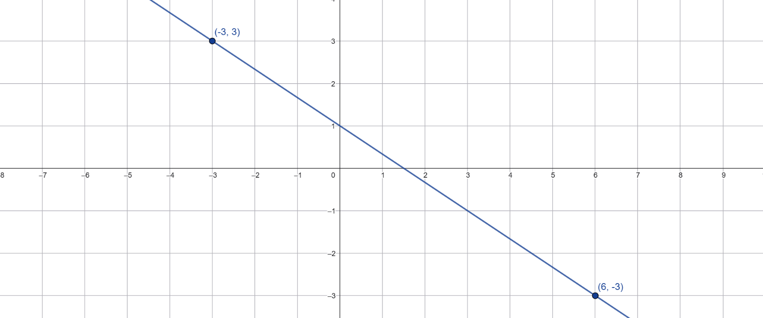 Write an equation for the line that goes through the points (-3,3) and (6,-3)