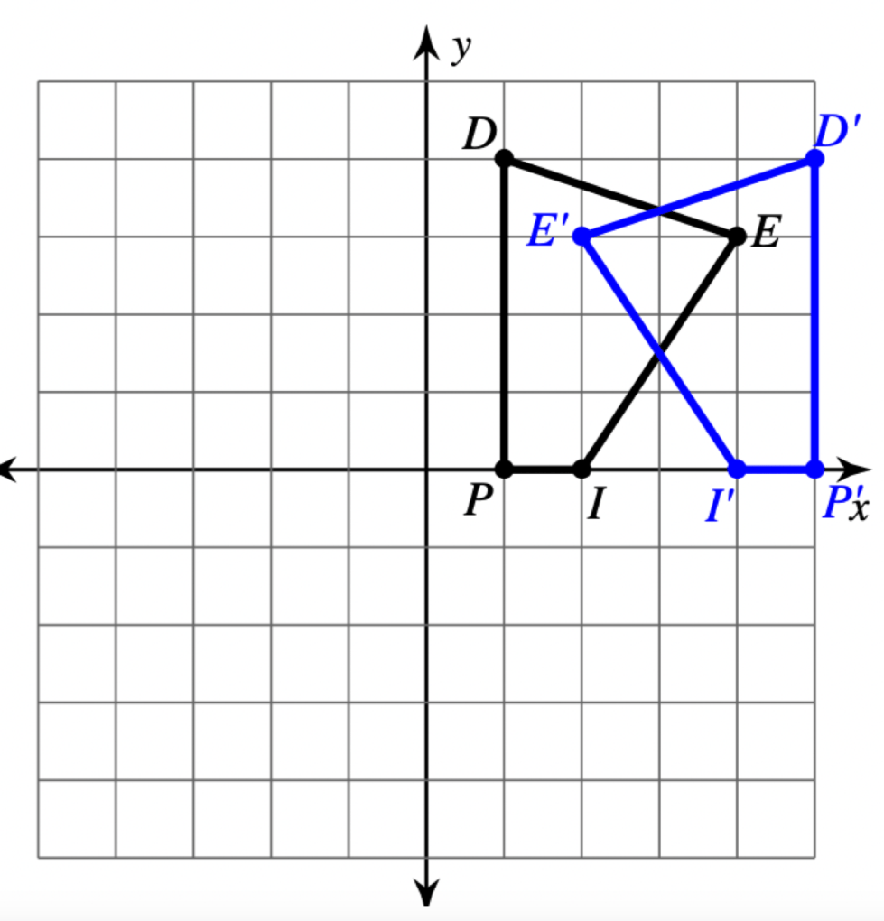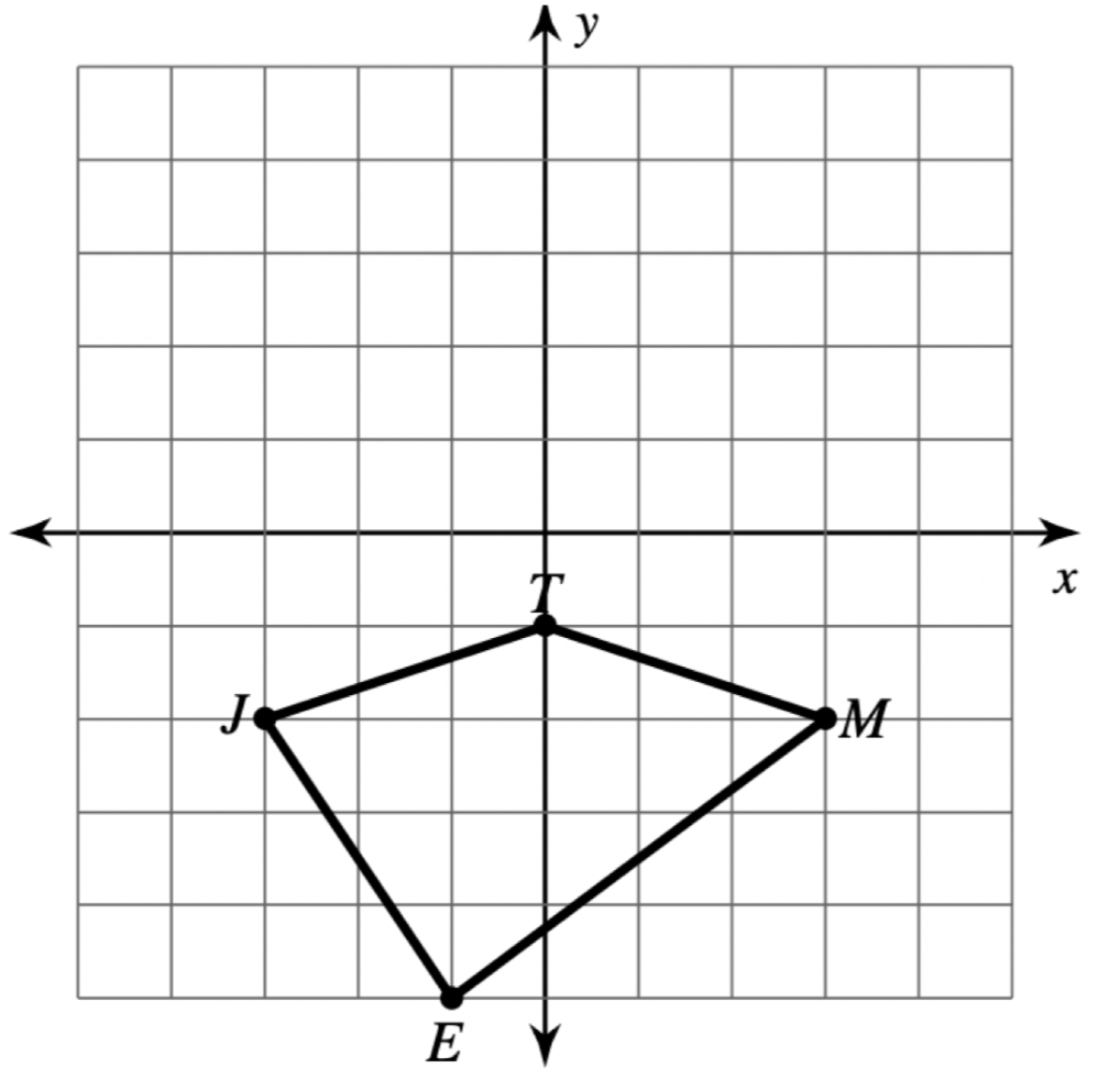 Reflect the quadrilateral over the x axis and then reflect over x= -1. Where do the coordinate points end up?