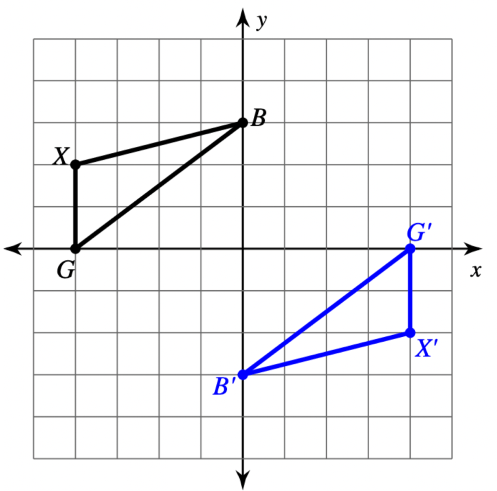 Reflect the triangle over the x-axis and then translate <5, -1>. Where do the image points end up?
