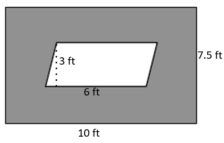 Molly is building a sandbox inside a play area. How much play area remains outside the parallelogram-shaped sandbox?