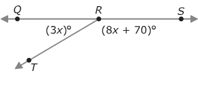 Solve for x and then find the measures of ∠QRT and ∠SRT.
