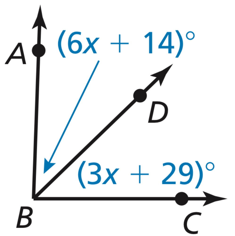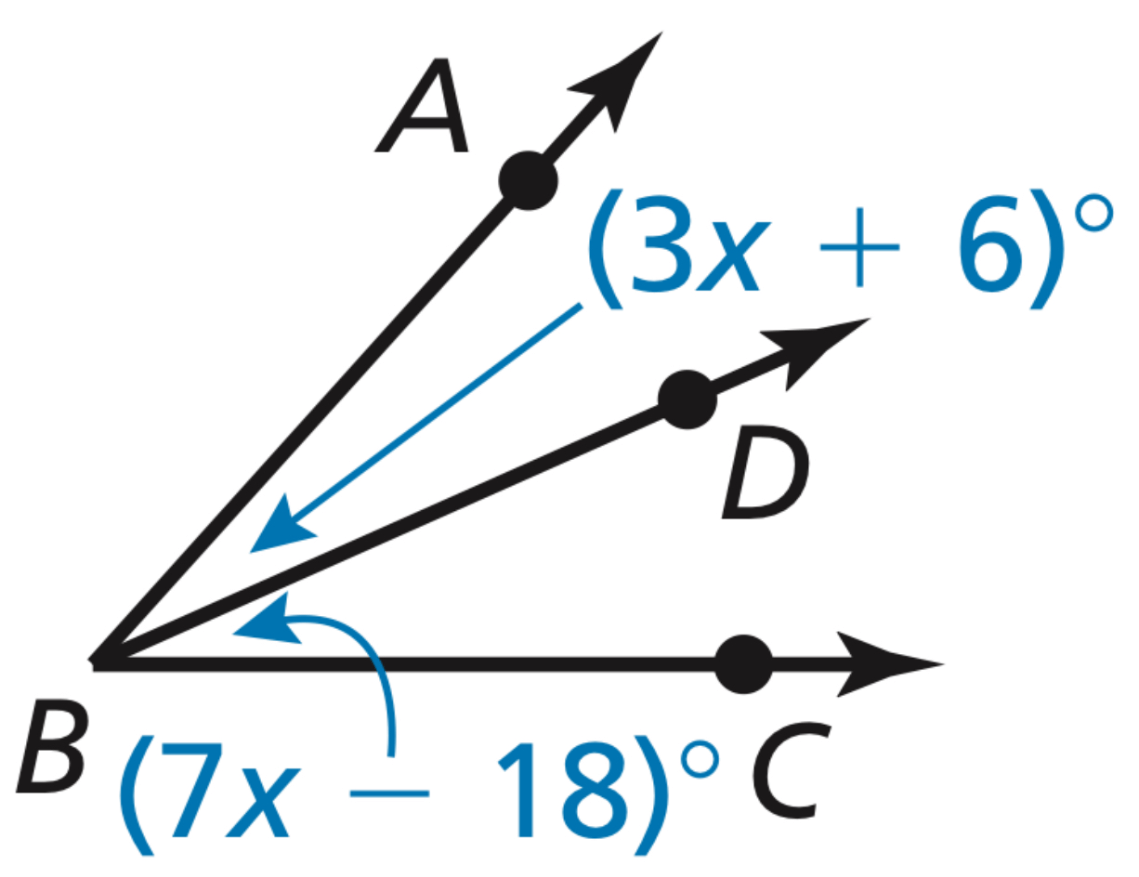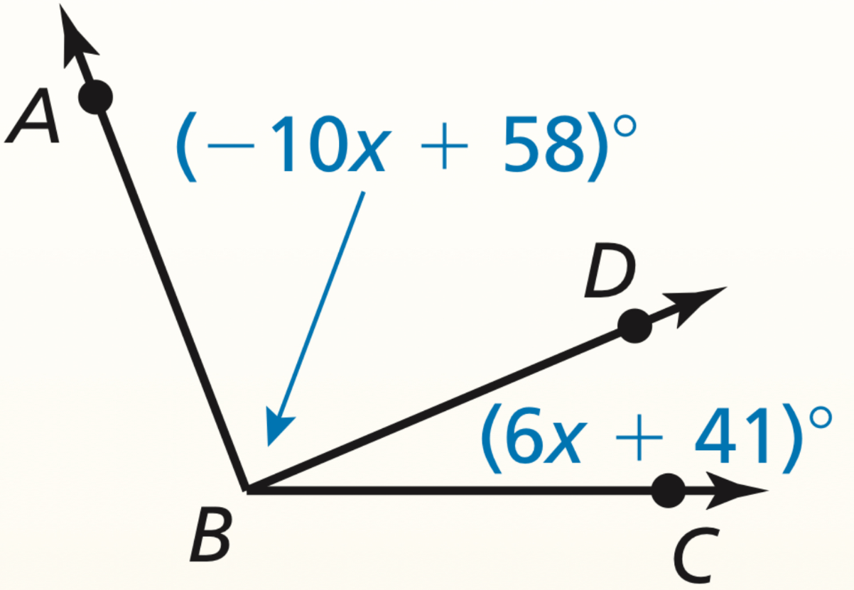 If m∠ABC = 111°, find m∠ABD and m∠CBD.