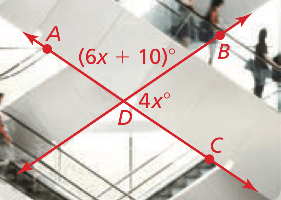 Find the measures of ∠ADB and ∠BDC formed between the escalators shown.