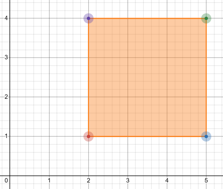 Imagine a square with vertices at (2, 1), (5, 1), (5, 4), and (2, 4).
