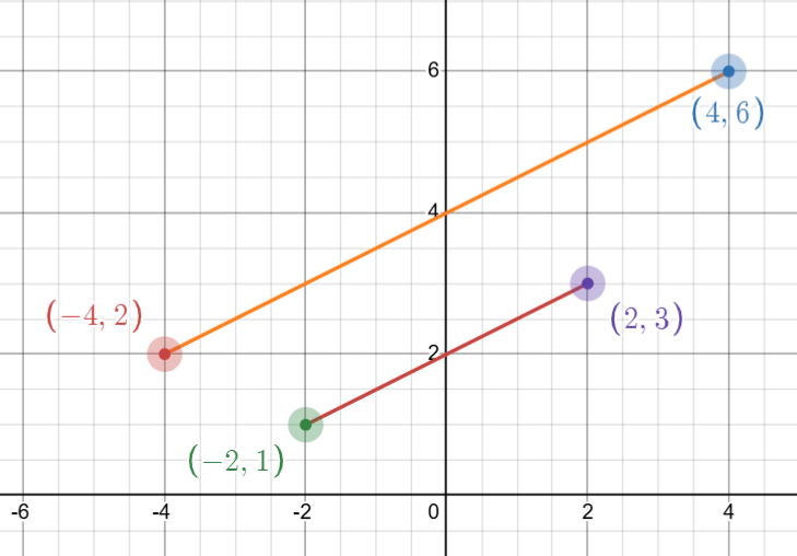 Imagine segment AB where A(-4, 2) and B(4, 6) with center of dilation at origin.