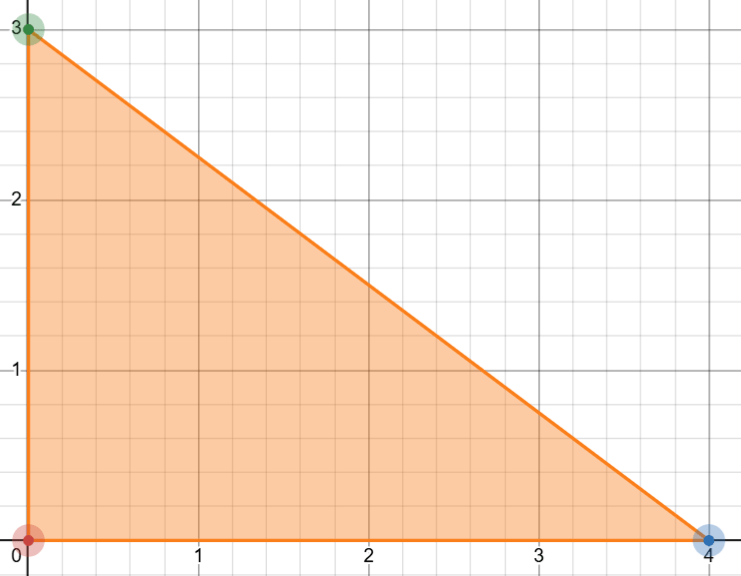 Imagine a right triangle with vertices at origin O(0, 0), A(4, 0), and B(0, 3).