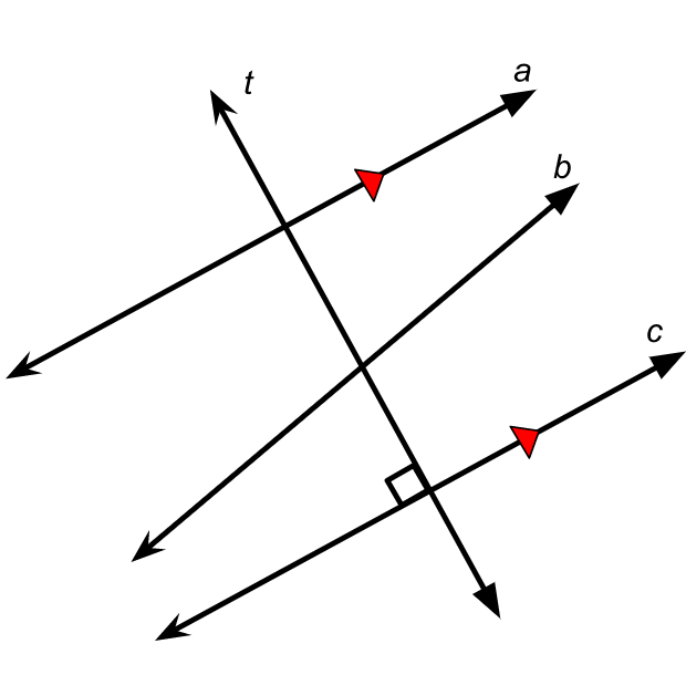 Yes, since line a and c are parallel and line c and t perpendicular, then lines a and t have to be perpendicular as well.