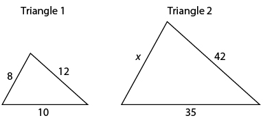 Triangle 1 is a scale drawing of triangle 2, as shown below.