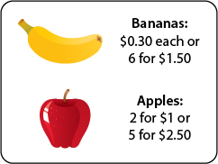 The sign below advertises the cost of fruit at a roadside market.