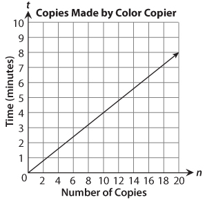 The graph below shows the relationship between the number of color copies a copier makes (n) and the time it takes to make them (t).