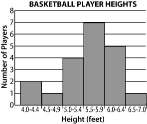 The graph below shows a random sampling of players’ heights in a junior basketball league.