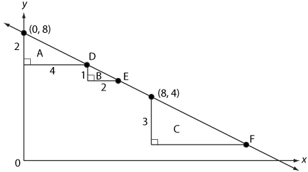 2. The slope of triangle A and triangle B give the same value for the slope of the line. (T/F)