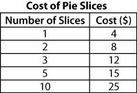The table below gives the price for several different slices of pie sold at a bakery.