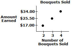 Victor sells bouquets of flowers at a farmers market. He earns a flat rate for each bouquet sold, shown on the graph below.
