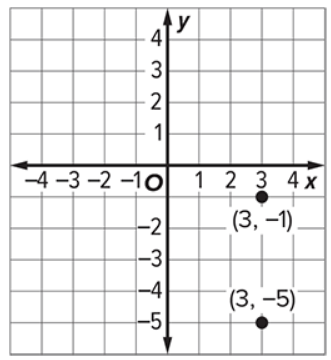 Give one ordered pair with a vertical distance of 5 from the point (0, 3)