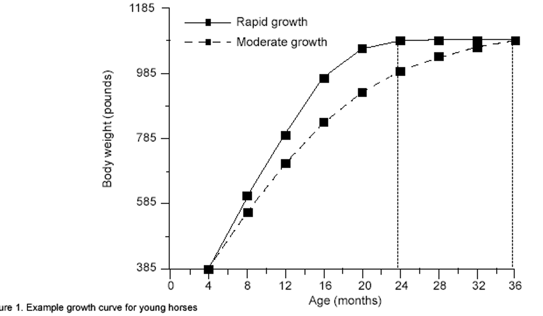 The year a rapidly growing and a moderately growing horse reach the same mature weight