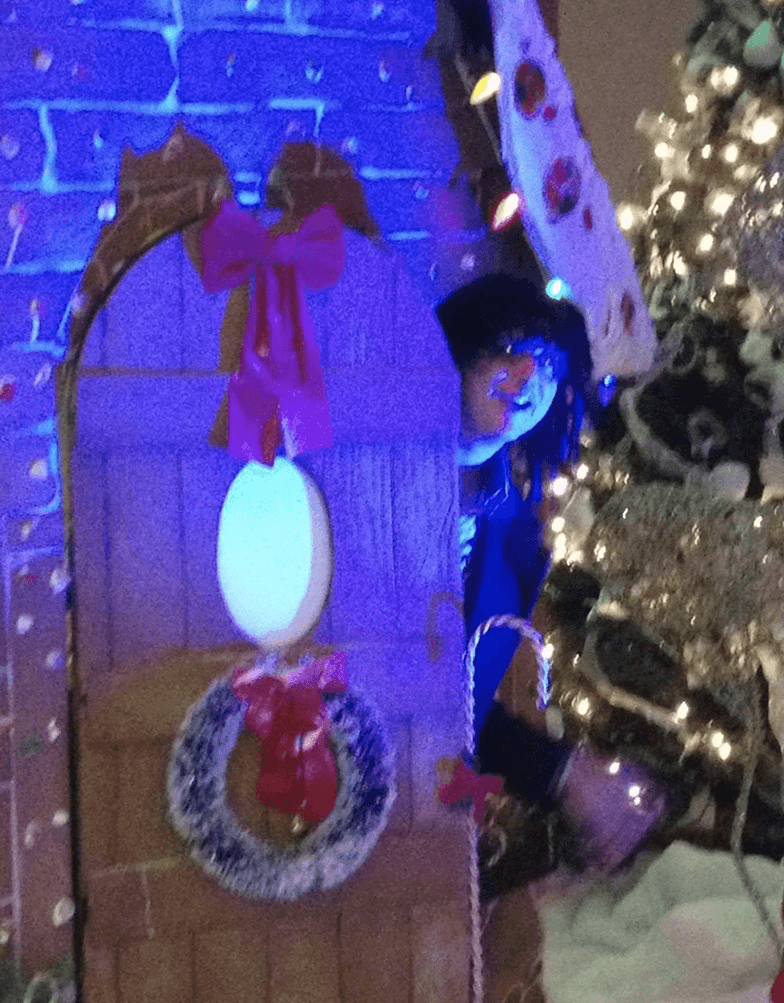 In the song- “I saw mommy kissing Santa Claus“ underneath the mistletoe, mommy tickled Santa Claus here…