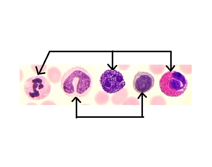What kind of leukocyte is the cell all the way to the right?