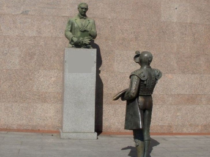 What is outside the Main Bullring in Madrid? (Tribute to Fleming)