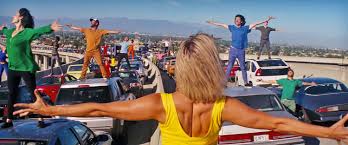 This film opens with a musical number on a traffic jam in Los Angeles. Name the movie.