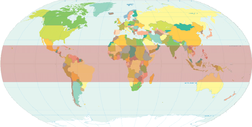 Coffee beans are grown in this region surrounding the Equator, bounded by these lines of latitudes.