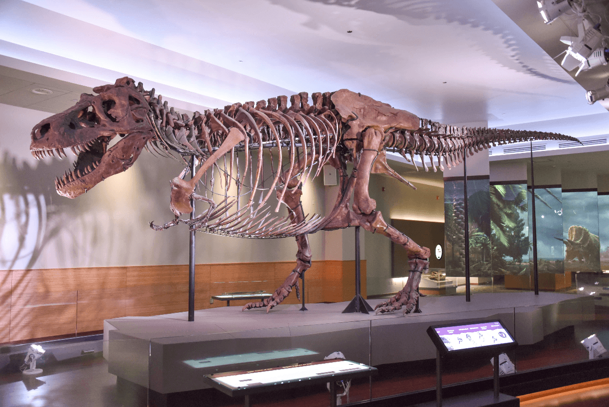 "Sue" here is one of the largest Tyrannosaurus Rex fossil specimens ever found, showcased in the Field Museum in this American city.