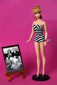 This 1959 Mattel doll became a very popular toy, first sold in a black-and-white striped swimsuit.