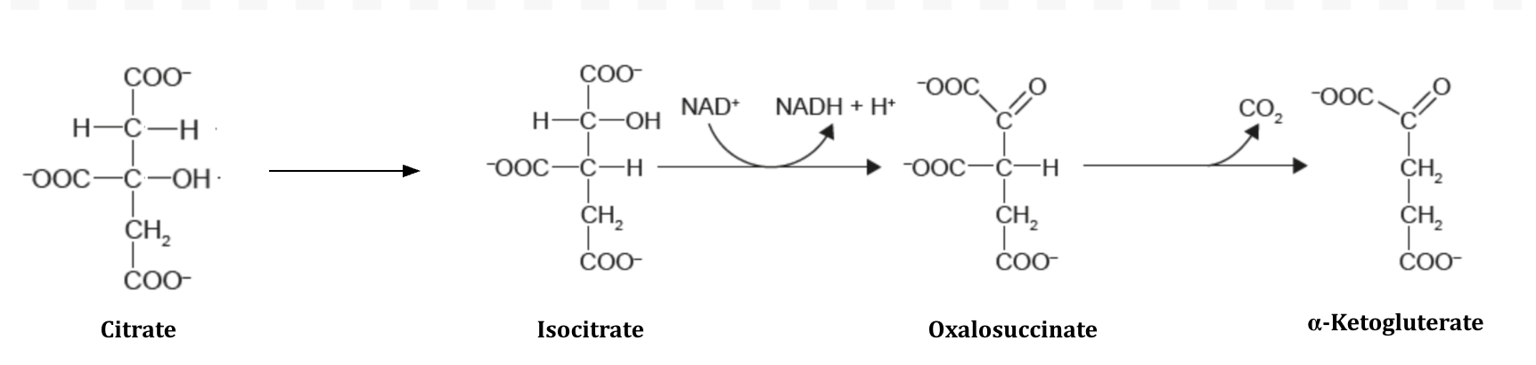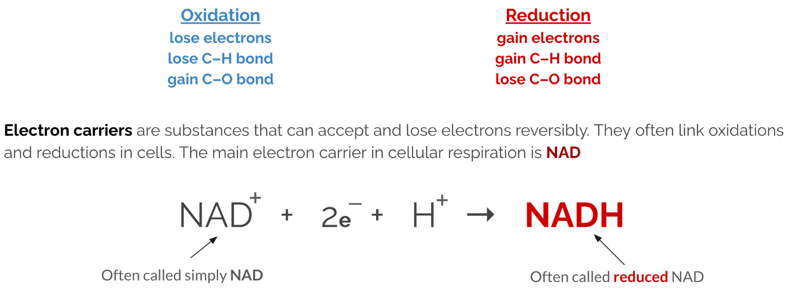 • The 2C compound then forms an acetyl group when it loses hydrogen atoms via oxidation (NAD+ is reduced to NADH + H+)