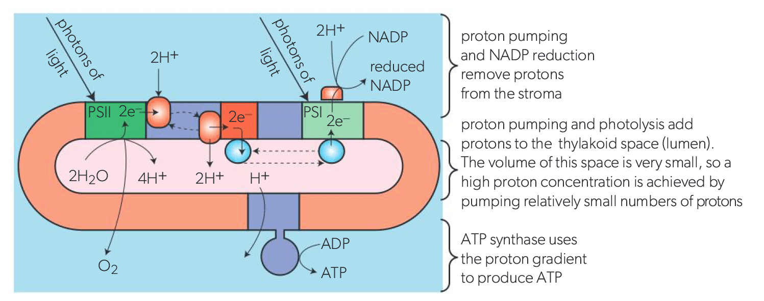 1. Photophosphorylation in the light dependent phase of photosynthesis