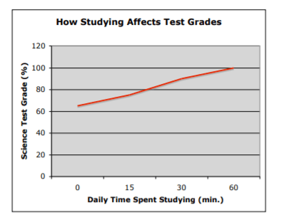The type of relationship shown on the scatter plot graph below between time spent studying and test grades.