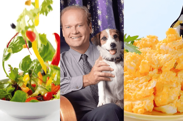 The TV show Frasier is known for it's eccentric off-beat musical intro sung by Kelsey Grammer. What two odd foods are mentioned in this theme?