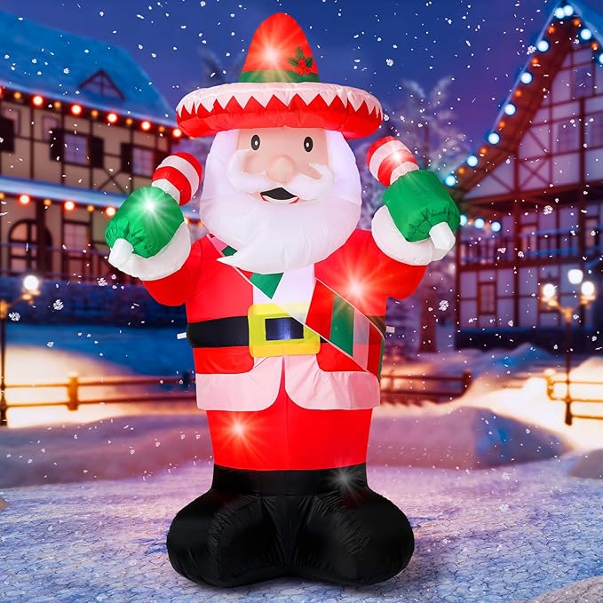 One of the most common inflatables features this red-suited holiday icon waving from a rooftop or chimney.