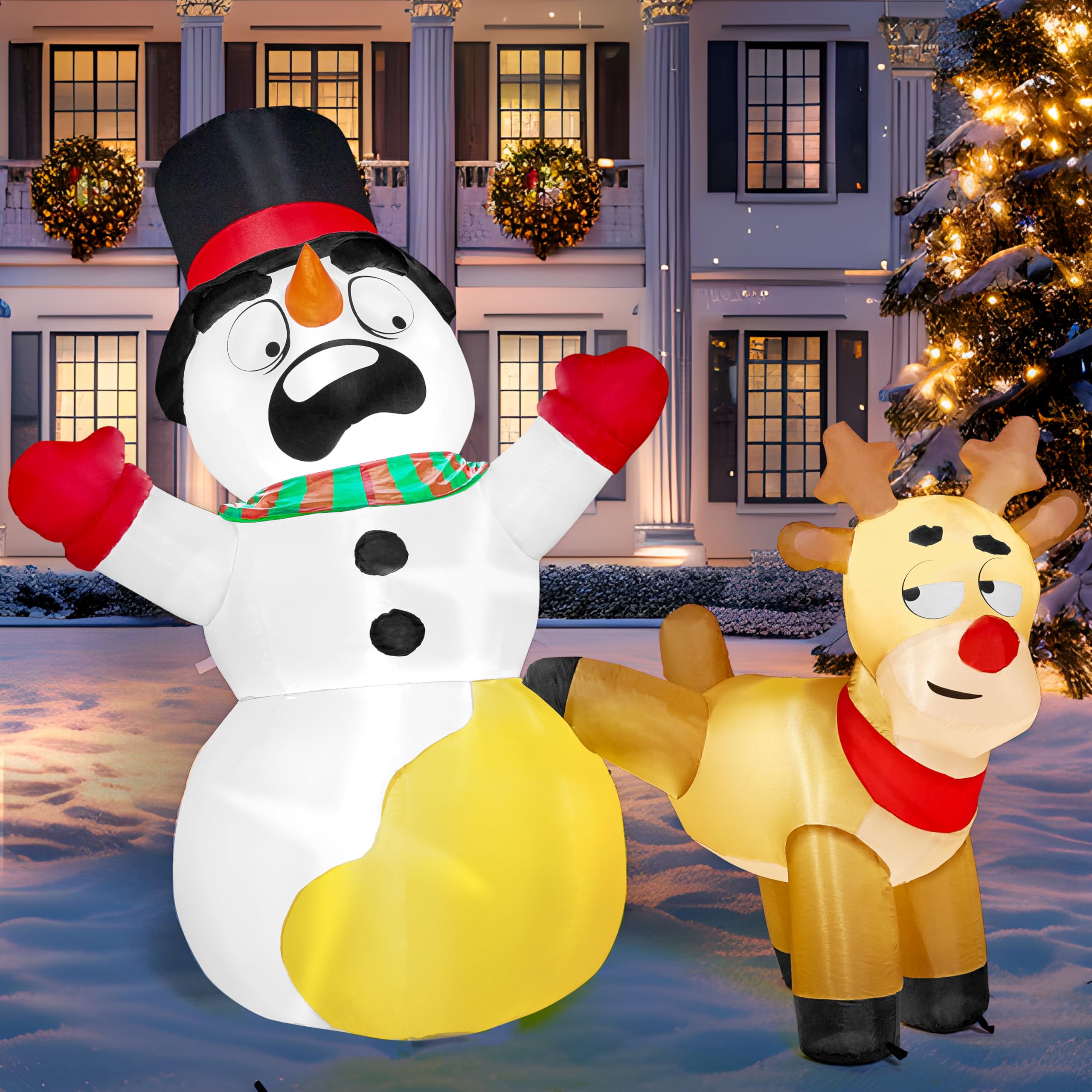 Inflatables shaped like frosty figures often wear scarves and hats.