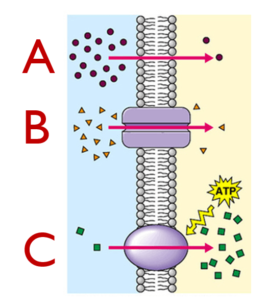 What type of passive transport moves small molecules directly through the cell membrane from high to low concentration?