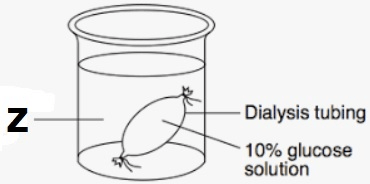 Z was a hypertonic solution. This caused water to move from the hypotonic solution within the dialysis tubing to the solution outside the cell model.