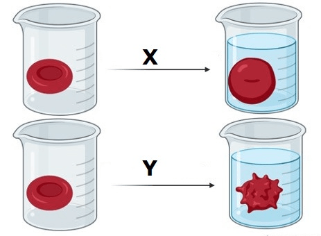 What type of solution was X placed in? AND What type of solution was Y placed in?
