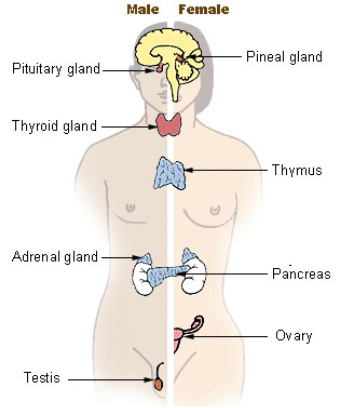 Name the system that creates and releases hormones like adrenaline, insulin, testosterone, and estrogen into the body.