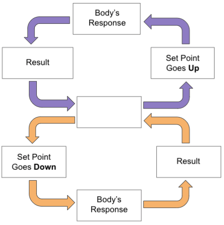 A positive feedback loop is when a change to the set point doesn't come back to homeostasis, but instead keeps going in that direction more and more until something happens to end the cycle.