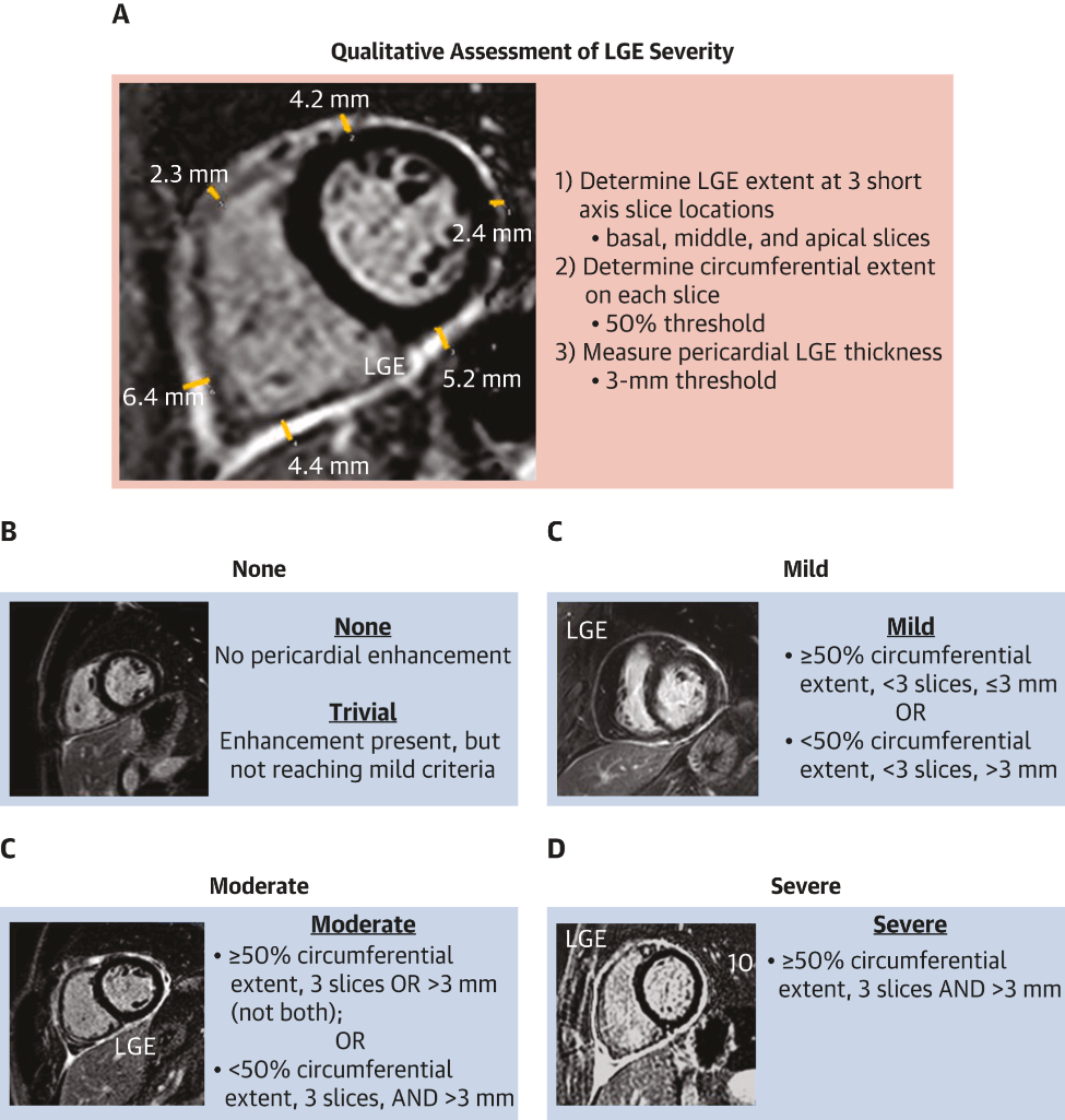 What finding on cardiac MR is primarily used to establish a diagnosis of pericarditis and grade it's severity?